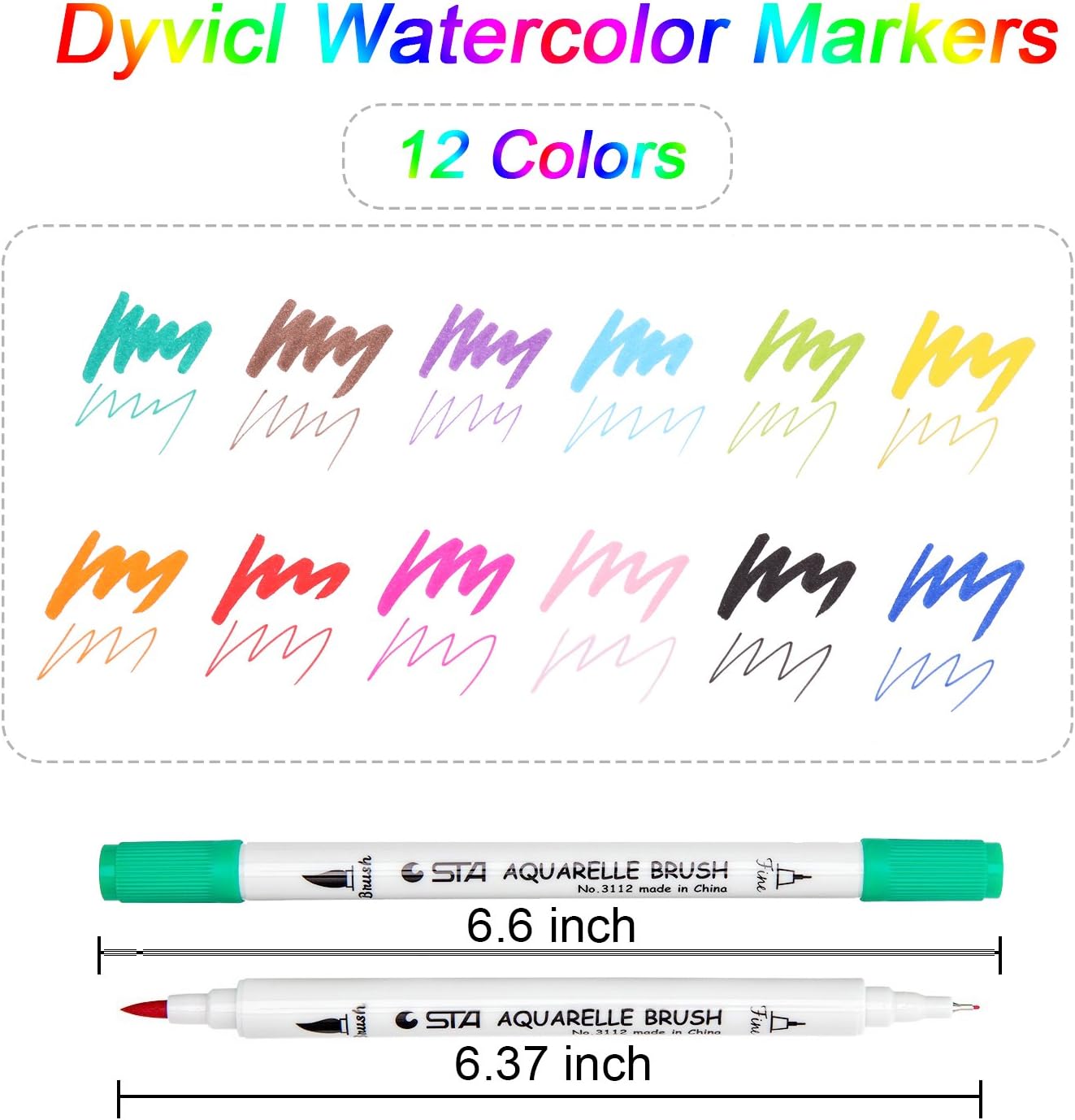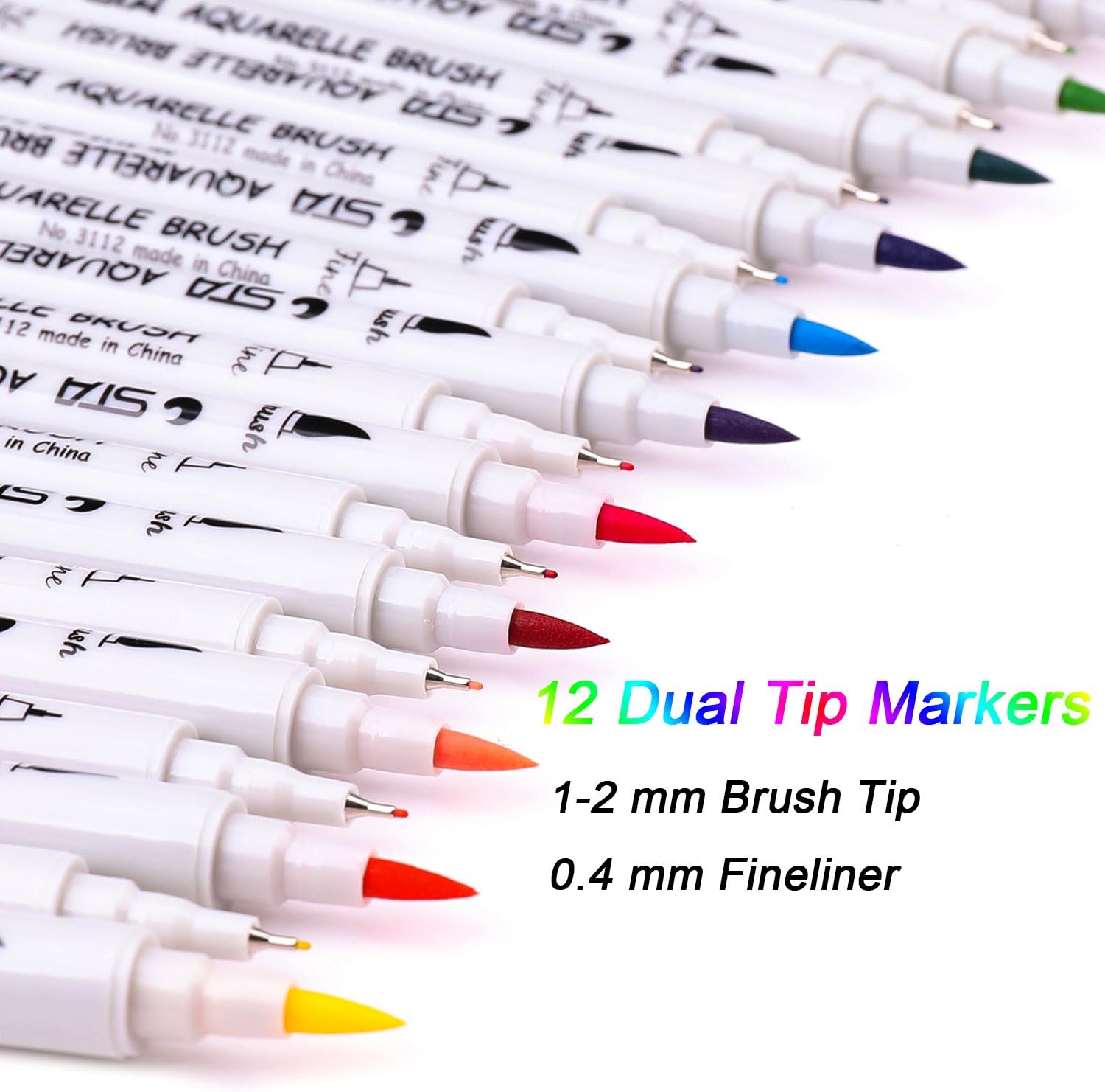 - Water based dye ink - 12 colors stand out distinctly, taking the place of the colored pencils. You will love our vibrant, vivid, pigmented. Non-toxic, odorless and kid safe. The ink flows smooth, no scratchiness or skipping. They dry fast and don't smudge. Our markers blend well when activated with a little water, providing a watercolor effect result