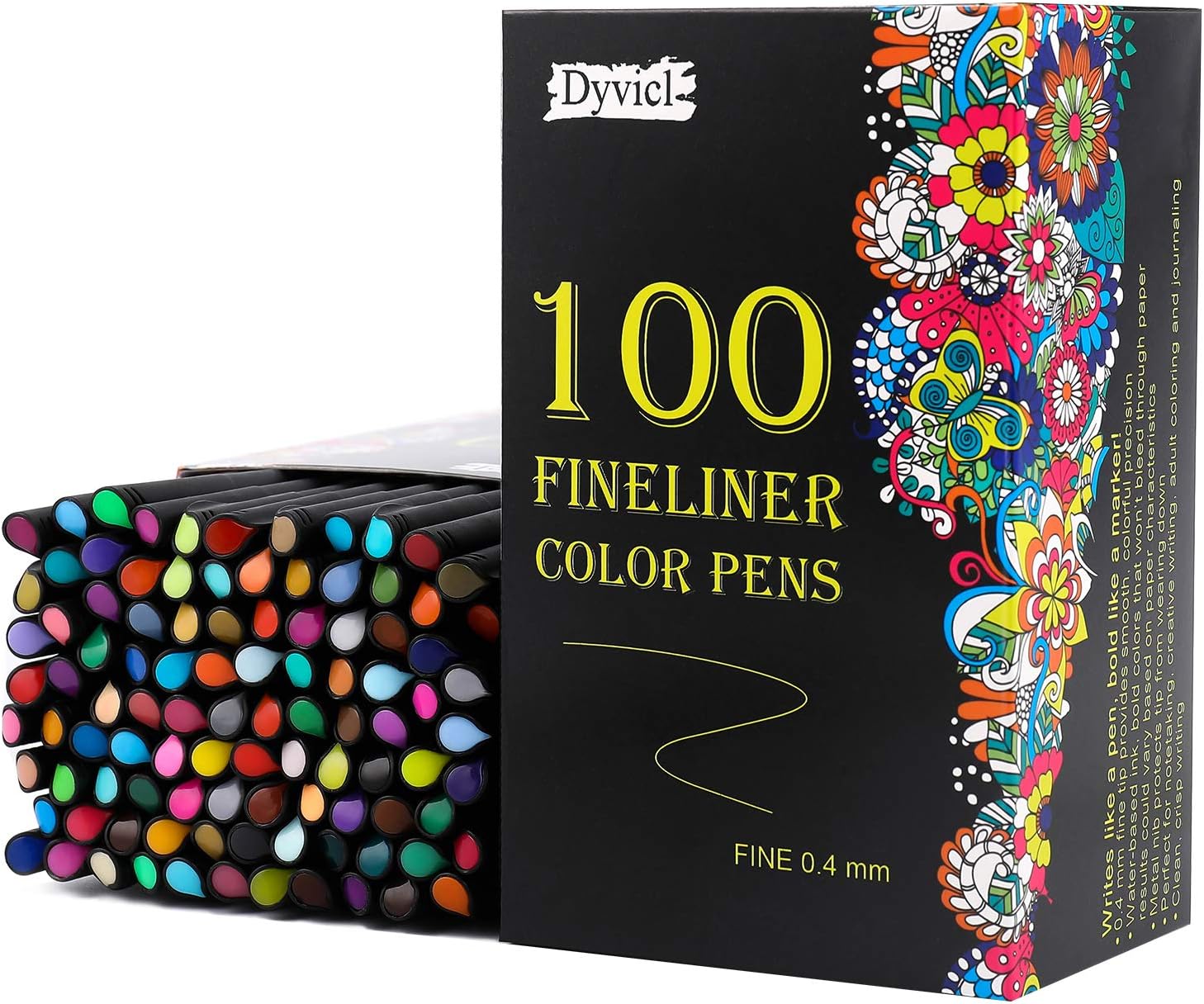 Dyvicl Fineliner Fine Point Pens, 100 Colors 0.4mm Fineliner Color Pen Set Fine Point Markers Fine Tip Drawing Pens for Bullet Journaling Writing Note Taking Calendar Agenda Adult Coloring